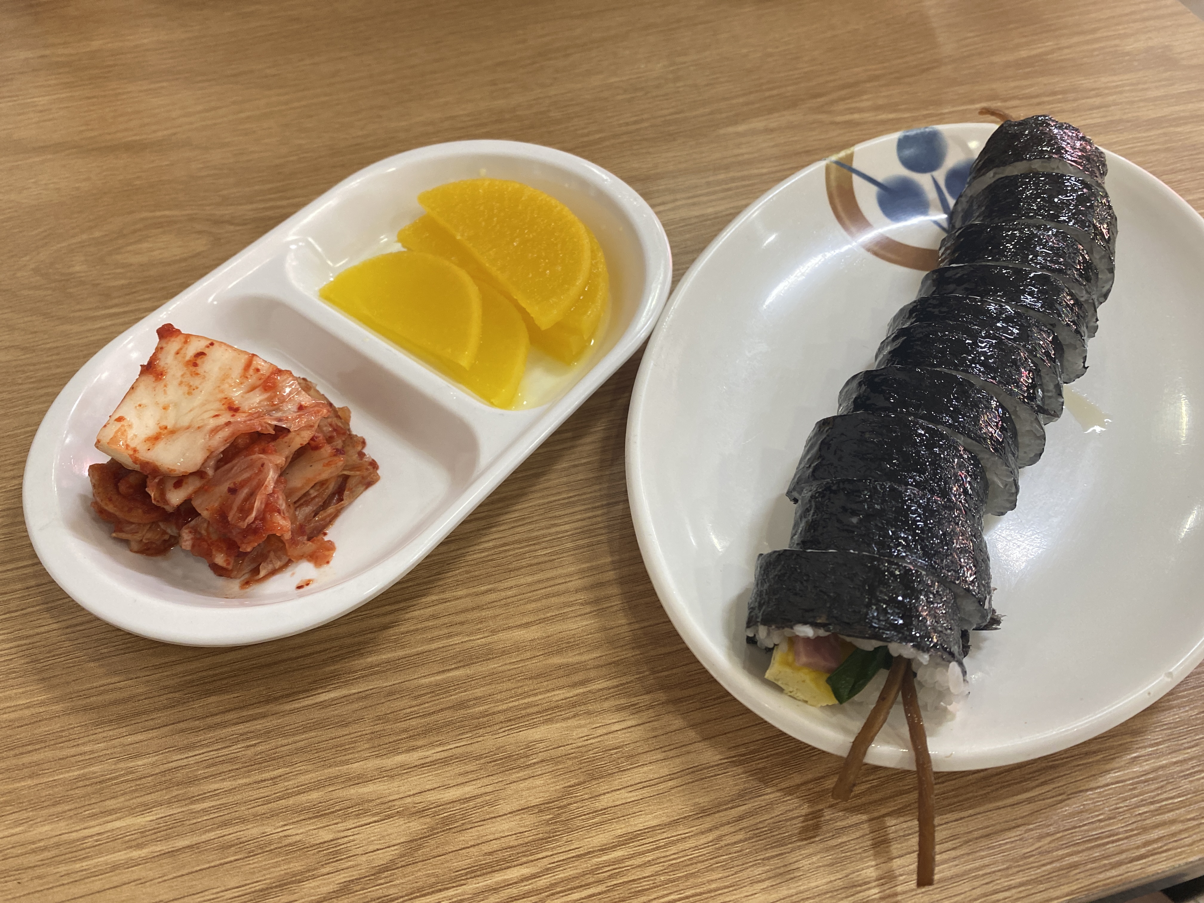 라면은 신라면 계란도 하나 올려줍니다. 김밥은 딱 오리지널 김밥의 맛입니다.